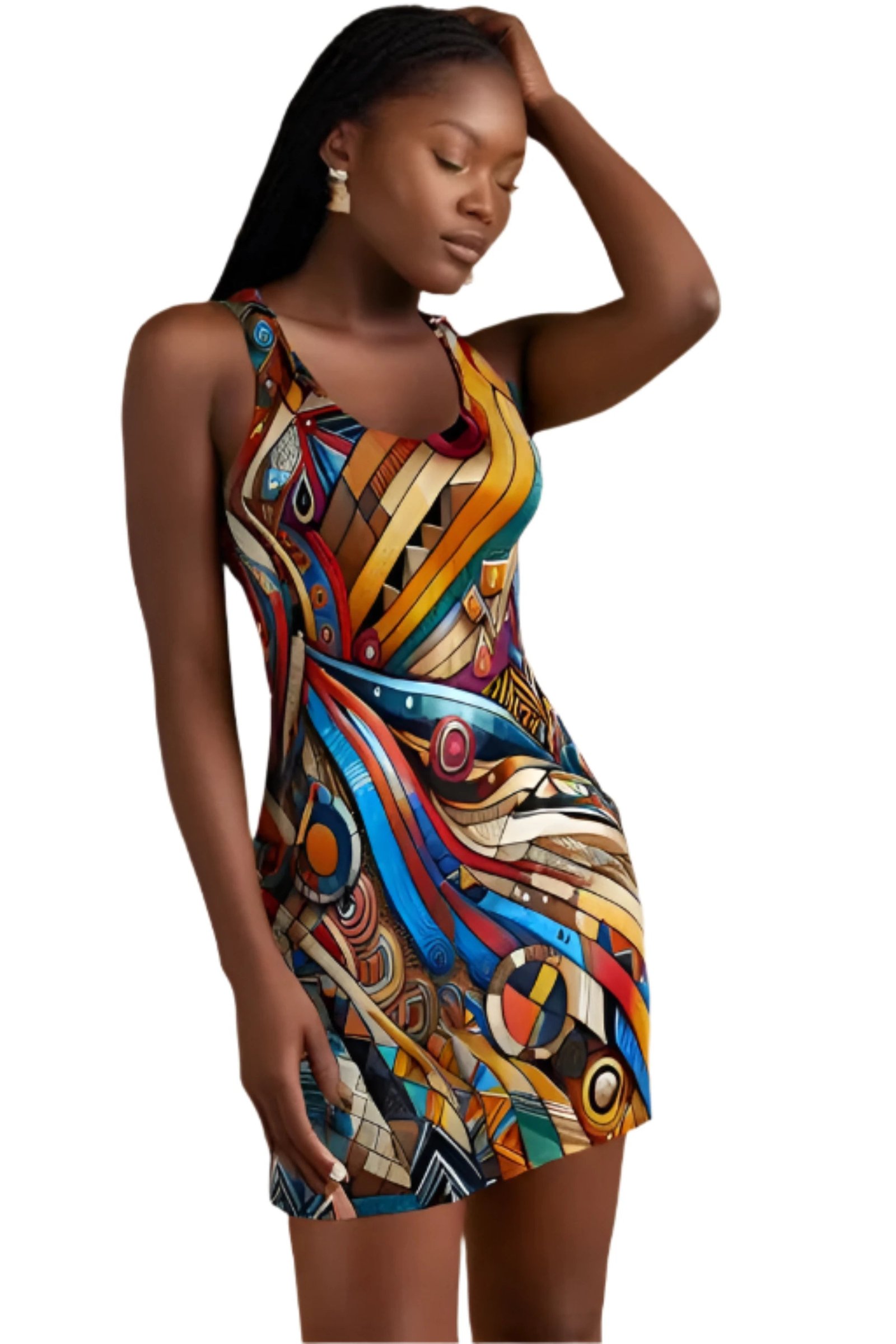 Step into style with the African style racerback dress from LuckeLadybug LLC. This dress has a vibrant, colorful pattern inspired by African art and culture. The abstract design stands out at any event. It brings energy to your wardrobe.
