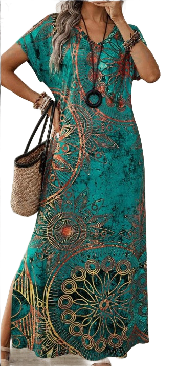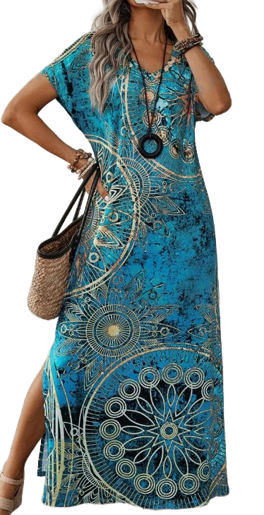Casual Batwing Sleeve Dress In Boho Print