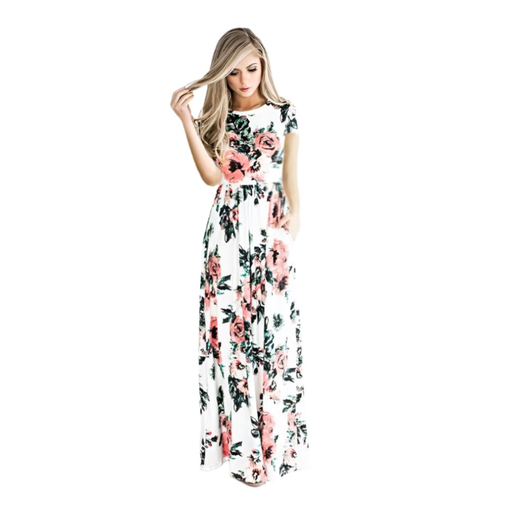 The floral maxi dress for women is perfect for many occasions. Wear it to a brunch, a garden party, or any casual outing. The flowy maxi length offers a graceful silhouette. The short sleeves and modest round neckline give it a classic touch that pairs well with both flats and heels.