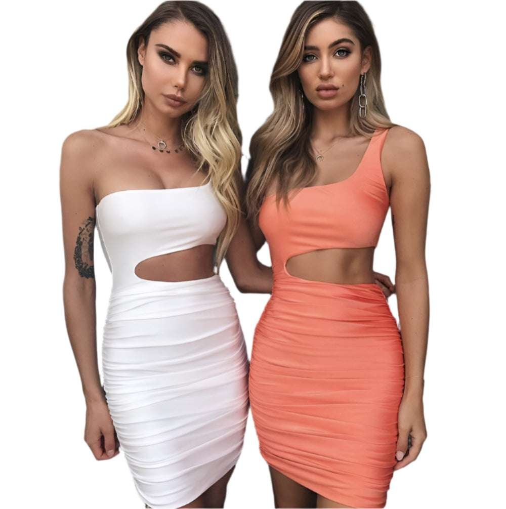 This hollow mini dress is available in two shades. It has subtle ruching for extra texture and a body-flattering effect. Each detail is crafted to add elegance and femininity to your wardrobe. The one shoulder mini dress is both daring and sophisticated.